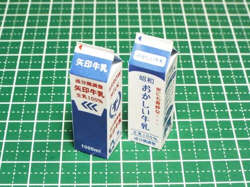 先日、以下のミニチュアの作り方の記事を書きました。 www.mini-mono.net 牛乳パックのミニチュアです。 以下の素材を追加します。 『矢印牛乳』 『おかしい牛乳』 ミニチュアの作り方記事を参考に、以下のように切り出しましょう。今回は、緑色の部分も切り…