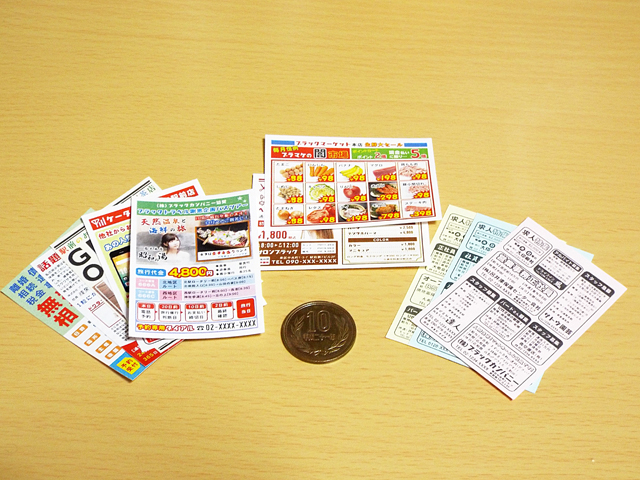 数日前に、ミニチュアの折り込みチラシセットを作りました。