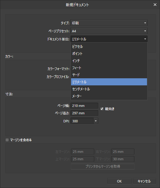 ミニチュアを製作していると、mm単位でのドキュメントの指定は重要な要素になります。もちろんAffinity Designerは対応です。